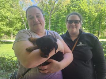 Puppies should be raised indoors, exposed to various sounds, surfaces, people, and children from a young age (e.g., puppy culture protocols).